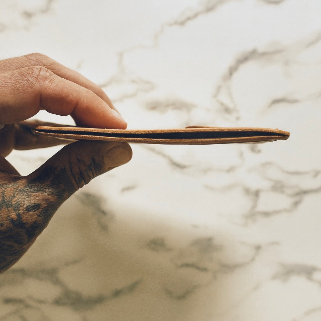 The Crestline cardholder is where American craftsmanship meets modern minimalism. Designed for those who appreciate subtle elegance, this slim wallet is hand cut from full-grain leather and finished with our signature burnish for timeless protection. This cardholder features one quick-access pocket on each side and a central open slot for added capacity.